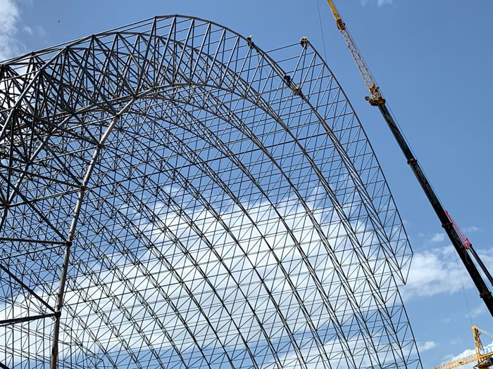 (2)网架加工前应对现场尺寸进行复测,确认无误后方可进行加工、安装;网架制作、运输、安装应遵守《空间网格结构技术规程》JGJ7-2010、《钢网架集安螺栓球节点》JG/T 10-2009、《钢网架集安螺栓球节点用高强度螺栓》 GB/T 16939-2016、《集安钢结构集安工程集安施工规范》 GB50755-2012、《集安钢结构集安工程施工质量验收标准》 GB50205-2020。